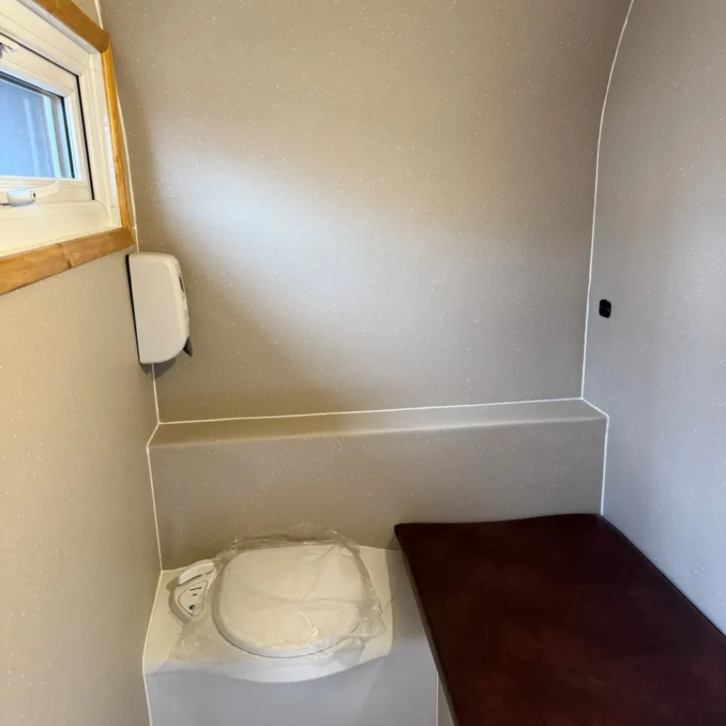 They include a bed, toilet, light and USB charging point.